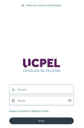 3 - Acesse o aplicativo e insira a sigla “UCPel” no local indicado.
