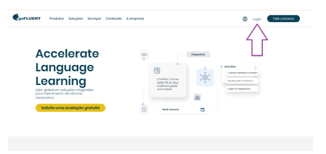 No navegador, clique em Login, no canto superior direito. No aplicativo, vai automaticamente para o login.