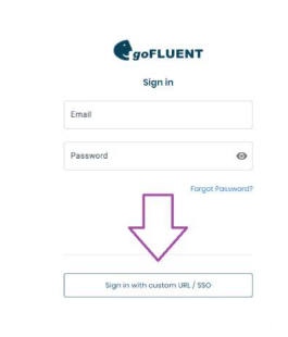Após, clique em “Sing in with custom URL/SSO” (ou, em português, “Faça login com URL personalizada/SSO”), na parte superior da tela.