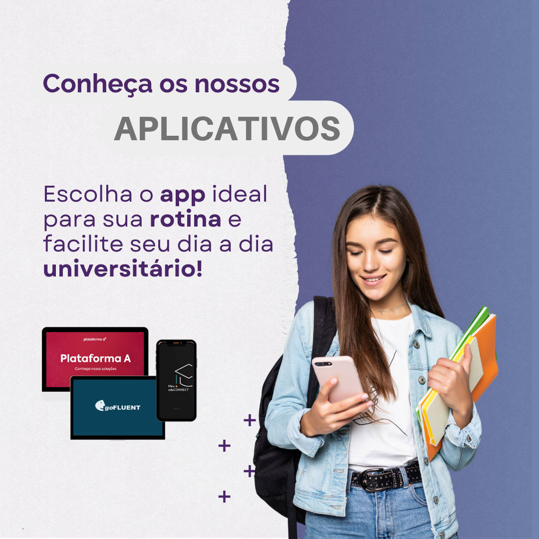 Alunos do EAD também têm a facilidade de ter a vida acadêmica na palma da sua mão! Basta baixar o app Plataforma A para facilitar seu dia a dia.