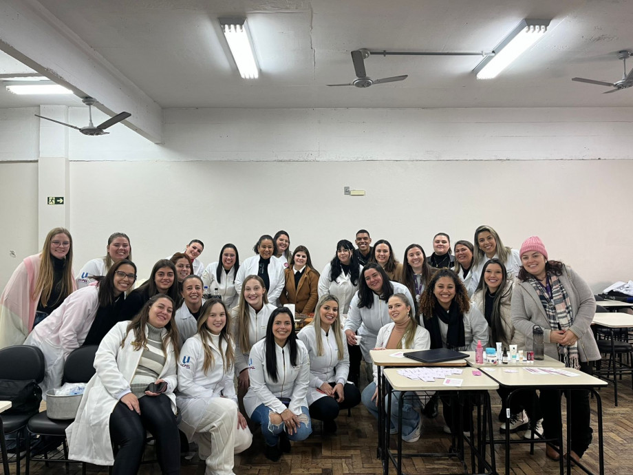 A atividade, que faz parte do Projeto Integrador do curso, contou com a presença de alunos da graduação. Entre os temas abordados estão saúde e estética da mulher, saúde do adolescente, cuidados com a pele no inverno, envelhecimento e qualidade de vida, texturas de pele e estética do homem.