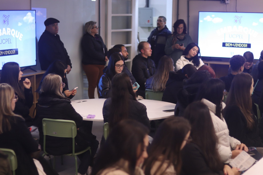 Pronta para a decolagem, a Universidade Católica de Pelotas (UCPel) realizou, nesta segunda-feira (28), o Embarque UCPel, evento de recepção aos novos alunos para o segundo semestre de 2025. Estudantes de mais de 19 cursos, nas modalidades presencial e EAD, foram recepcionados na sala 249C do Campus I. Na ação, foram apresentadas as plataformas da universidade e sanadas as dúvidas dos novos acadêmicos.
