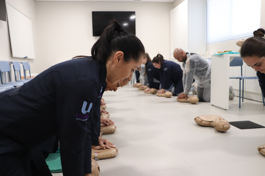 A atividade, ministrada pela professora da Medicina da UCPel e coordenadora do HSim, Ana Cristina Moraes, e pela professora da Enfermagem, Samanta Bastos, capacitou cerca de 60 enfermeiros que atuam nos mais diversos núcleos assistenciais do HUSFP. O treinamento teve foco no suporte básico de vida, incluindo a prática de massagens cardiorrespiratórias e outras técnicas de primeiros socorros.
