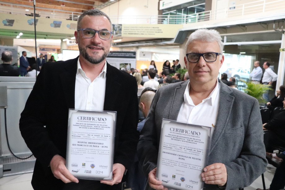 Nesta terça-feira (16), os professores Fábio Castro Neves e Luiz Alberto Forgiarini foram empossados como membros do conselho do Pelotas Parque Tecnológico (Tecnosul) e do Arranjo Produtivo Local (APL) da Saúde de Pelotas. A cerimônia também celebrou os nove anos de fundação do Tecnosul.