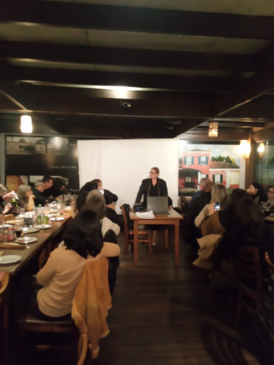 O encontro foi organizado pela assistente social e egressa da UCPel, Jussara Maria Trindade Häfele, e contou com a adesão de colegas de diferentes períodos próximos à formatura, como a turma de 1999-2.