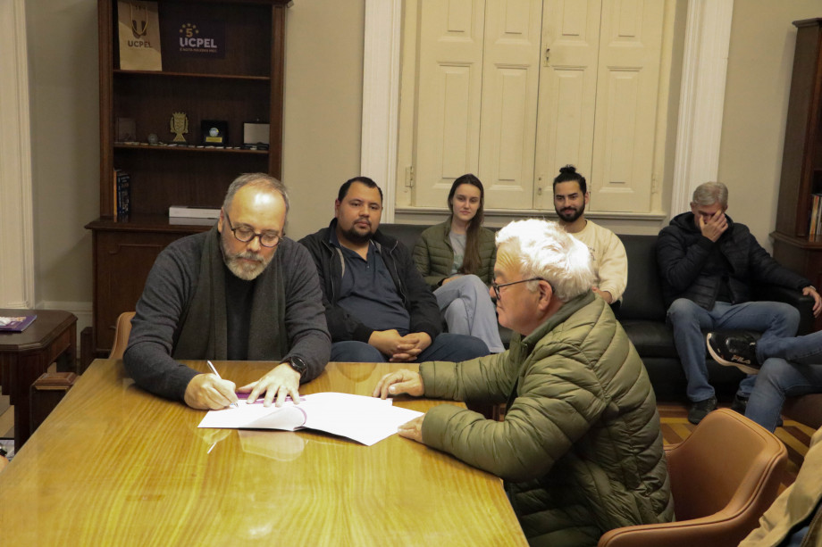 A Universidade Católica de Pelotas (UCPel) firmou uma parceria com a Prefeitura de Jaguarão nesta segunda (8). O reitor José Carlos Pereira Bachettini Júnior recebeu em seu gabinete o prefeito Rogério Lemos Cruz para a assinatura do termo.